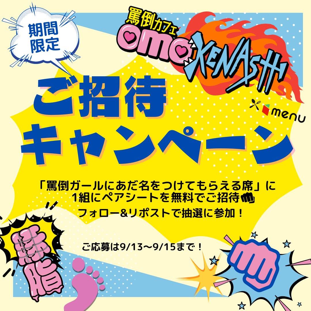 ■景品:9/16(月)〜9/20(金)の【11:00〜】【12:15〜】【17:15〜】のいずれかの枠の罵倒ガールにあだ名をつけてもらえる特典つき「罵倒あだ名席」のペアシート無料でご招待