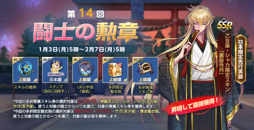 ■乙女座・シャカの日本先行限定スキン登場!イベント「闘士の勲章 第14回」開催!