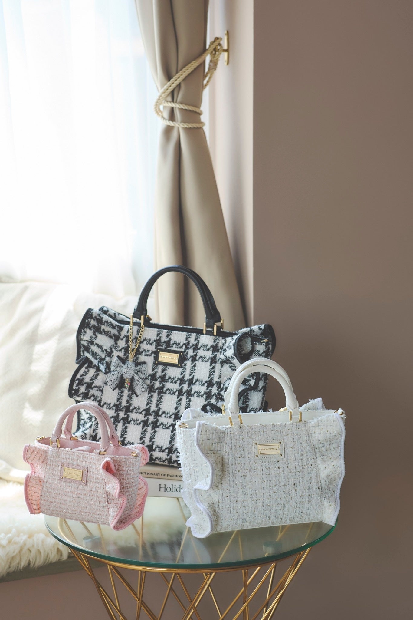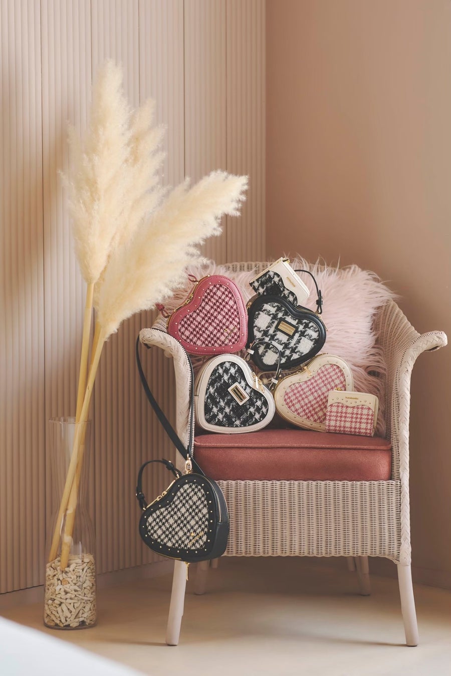 ハート型ショルダーバッグから、ツイード素材と千鳥柄が新しく登場。