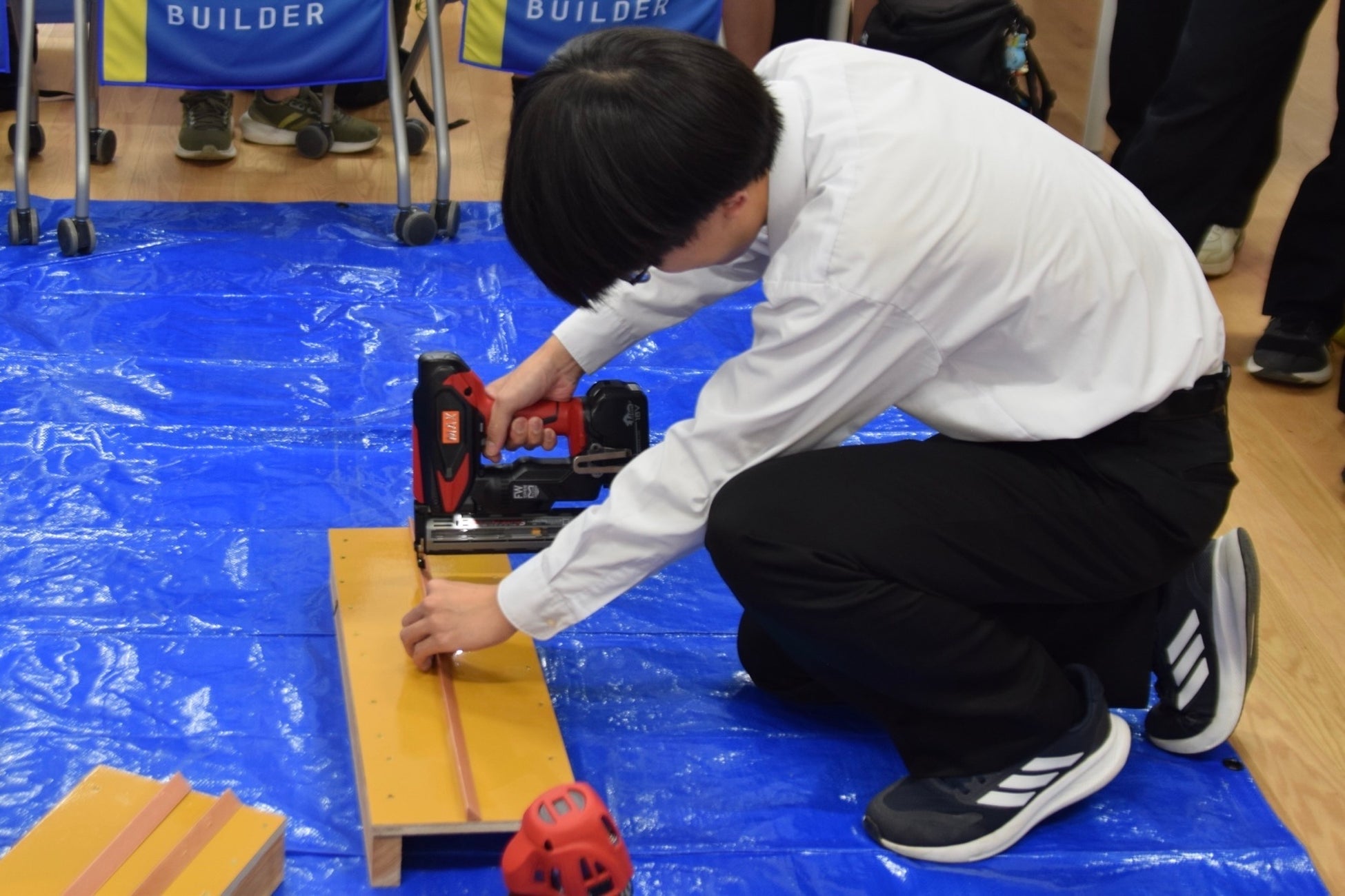 お仕事体験では、釘打ちやヘアカットなど様々な業界の体験を通して、企業の理解を深めていました。積極的に企業に質問する生徒の様子が印象的でした。