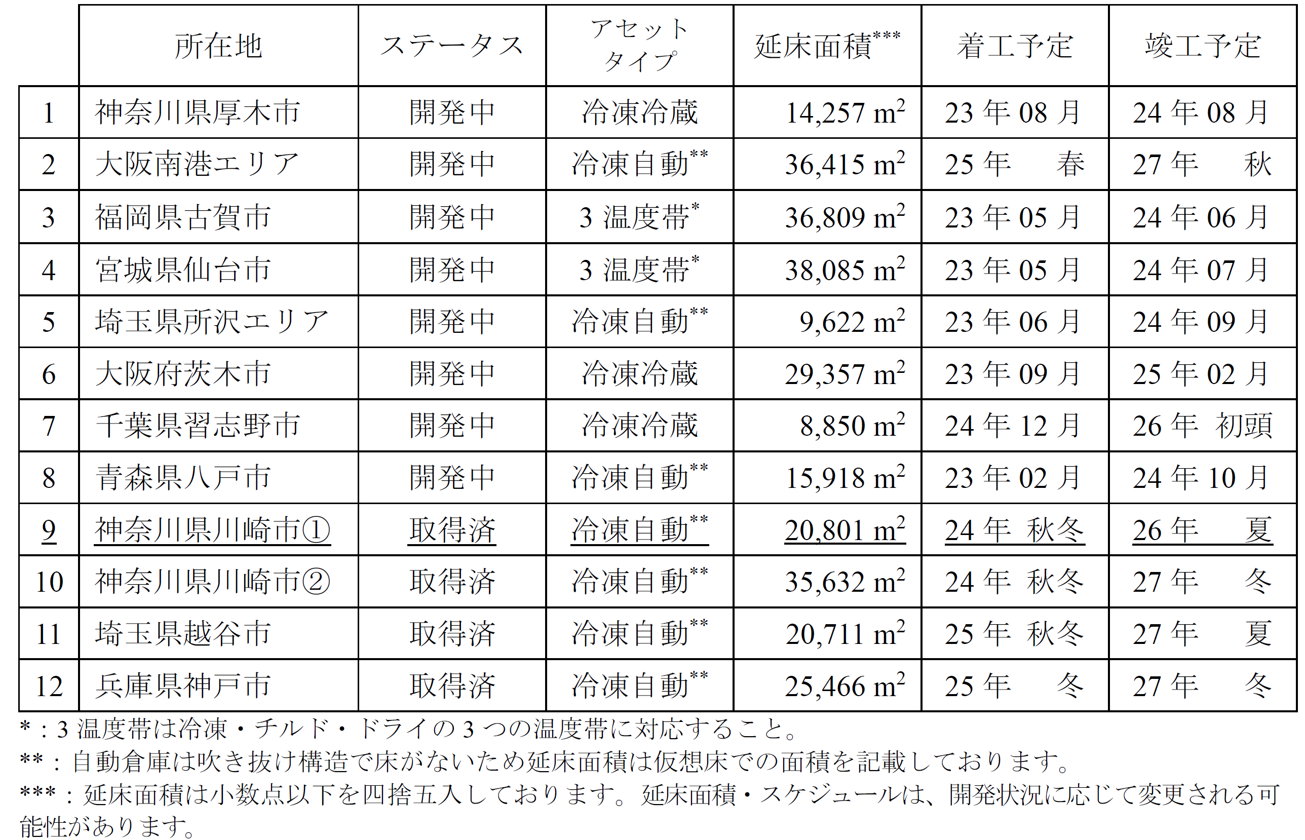 ■霞ヶ関キャピタル物流施設開発予定物件一覧
