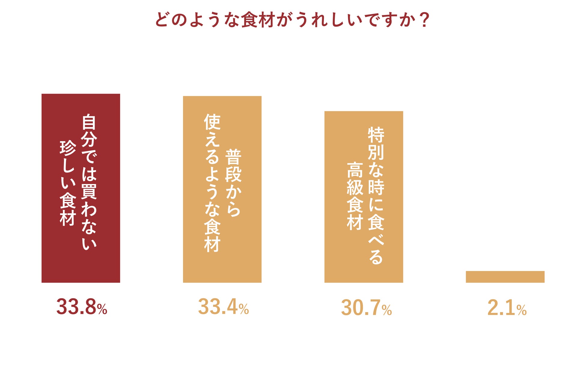 - もらってうれしい食材は「自分で買わないもの」「普段から使える食材」「高級食材」