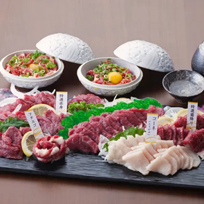ギフト用の特別な馬刺しセットになります。当店自慢の馬刺しは口に入れた瞬間、脂の甘みが口の中いっぱいに広がり、とろけてしまう柔らかさです。一度食べて頂いた方やまだ召し上がっていない方には是非とも召し上がって頂きたい逸品です。