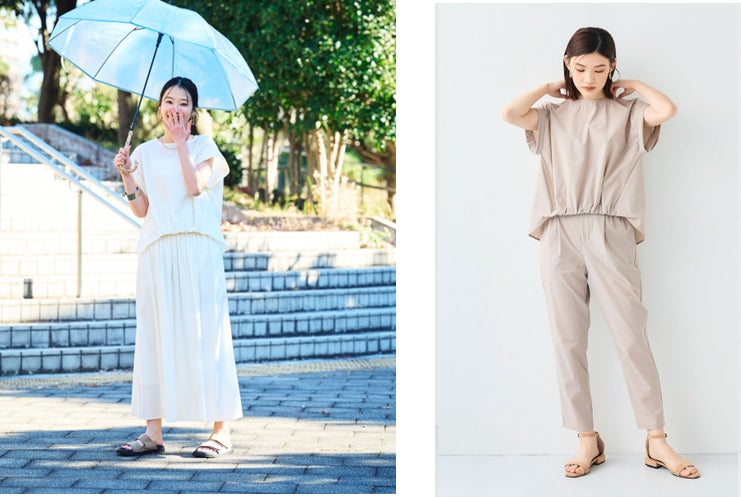 今年は新商品としてホワイトのブラウス&スカートのセットアップを追加。ホワイトでも汚れ目立ちを気にすることなく思いっきりおしゃれを楽しんでいただきたいという思いが込められています。