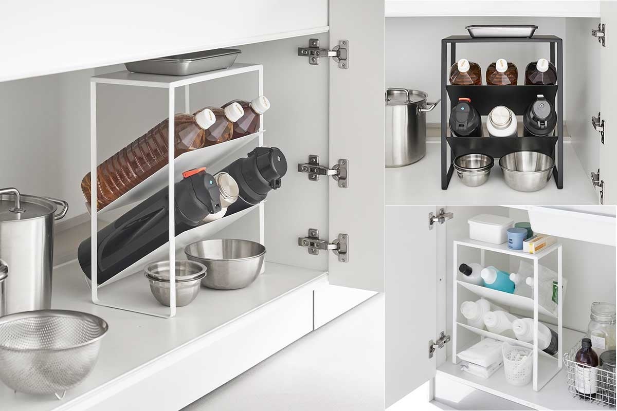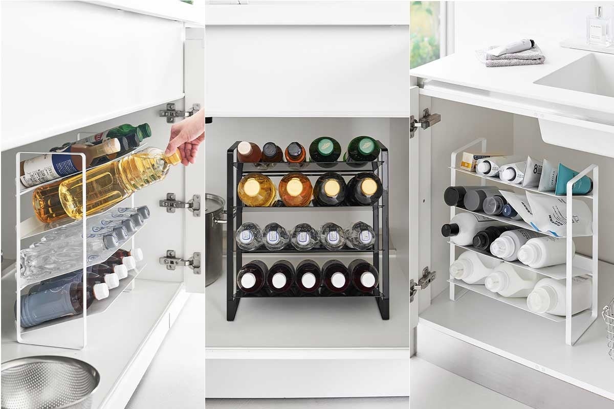 キッチン・洗面下収納で使えて、便利な大容量ボトルストッカーワイドサイズ。