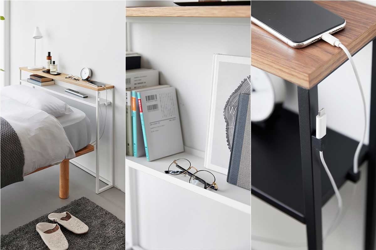 マグネット内蔵のケーブルホルダーが2個付属されており、スチール製のフレームや棚板のお好みの位置に取り付けることができるため、スマートフォンなどの充電の際にも便利。