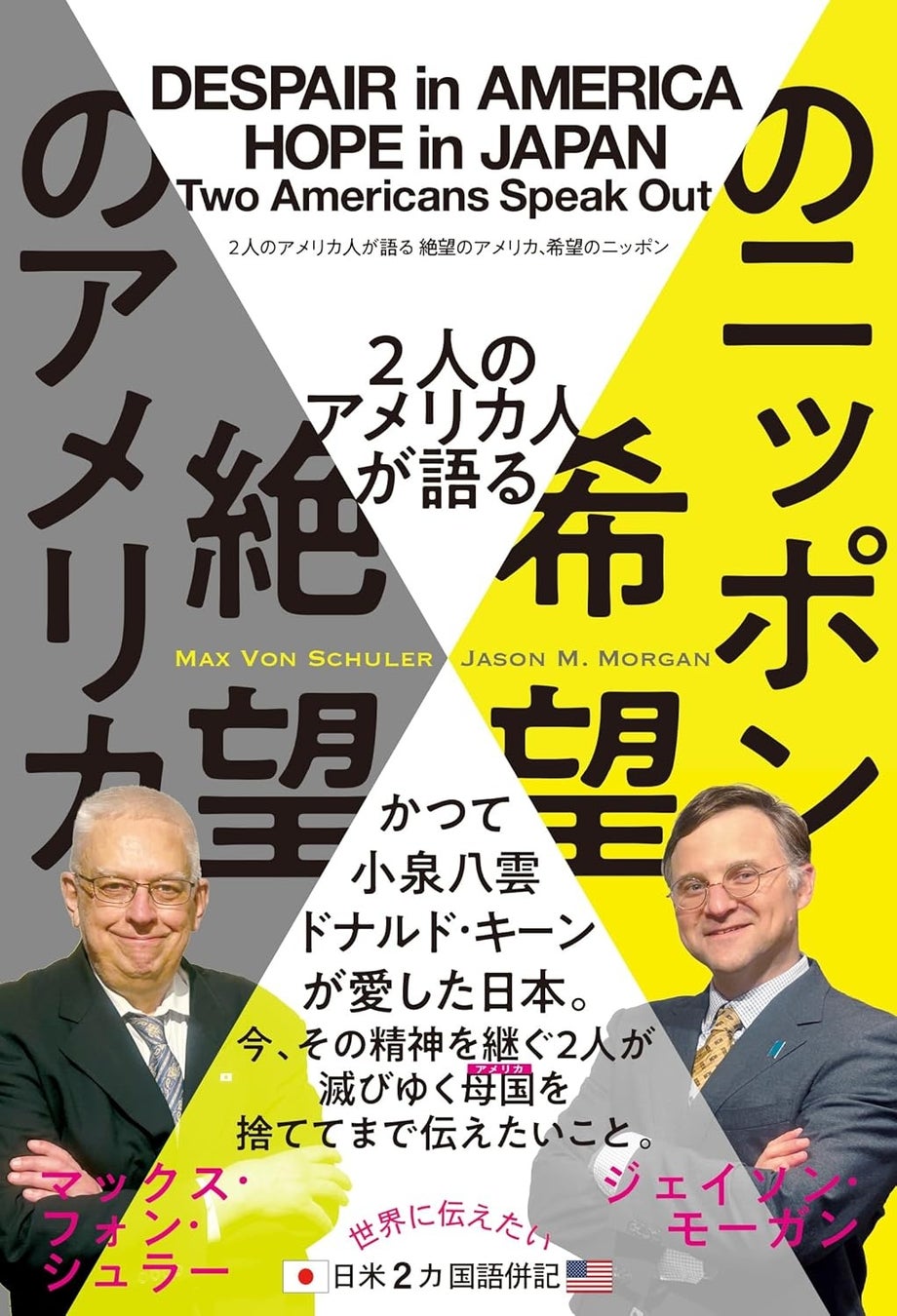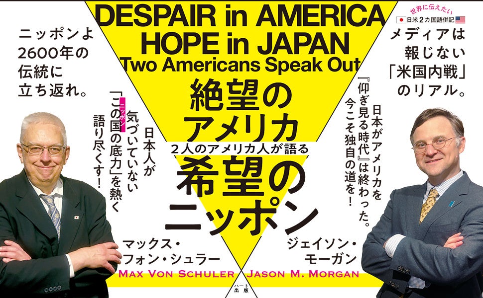 本書『2人のアメリカ人が語る 絶望のアメリカ、希望のニッポン』は、アメリカ出身のマックス・フォン・シュラーとジェイソン・モーガンの2人が、自国の現状を「内側」から徹底的に見つめ直し、その危機の本質を描き出すと同時に、日本という国の価値を再発見する評論書です。