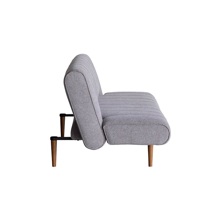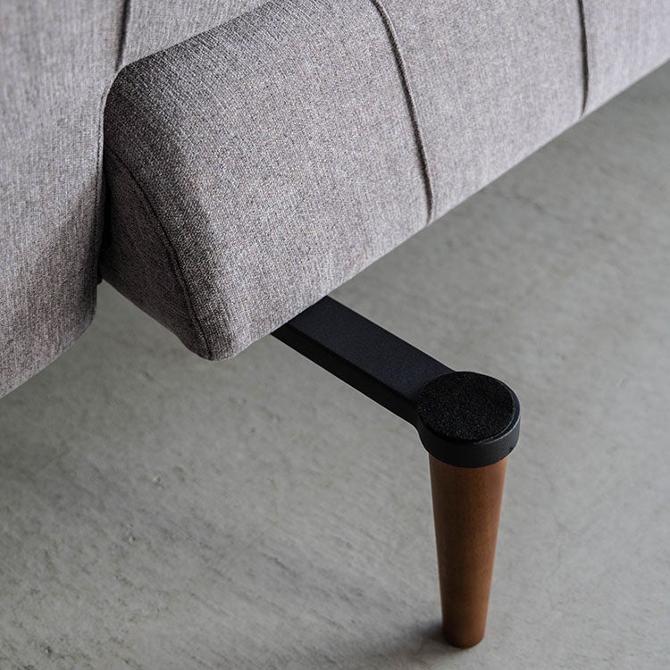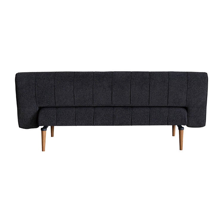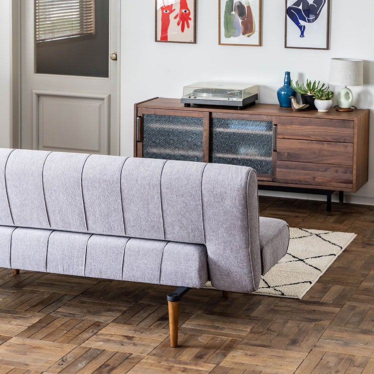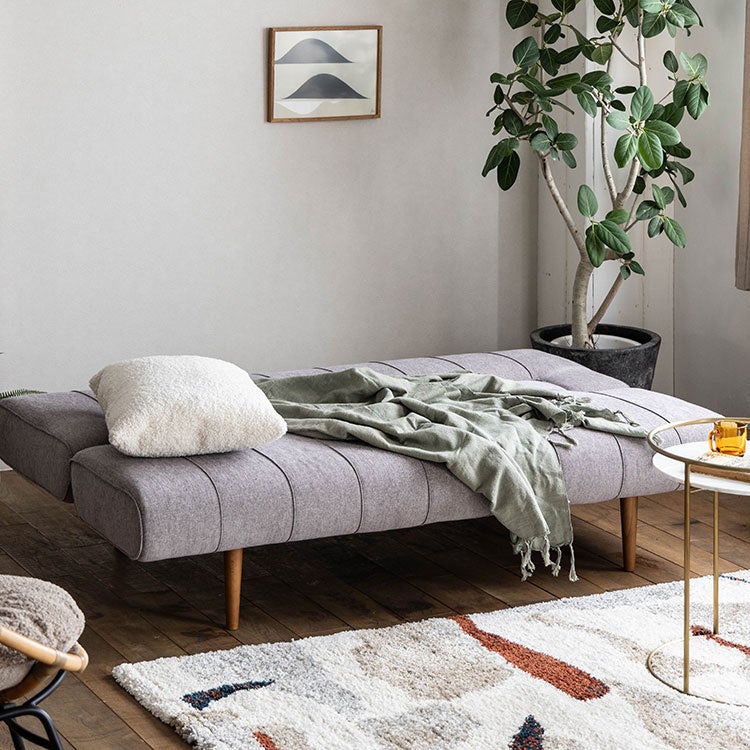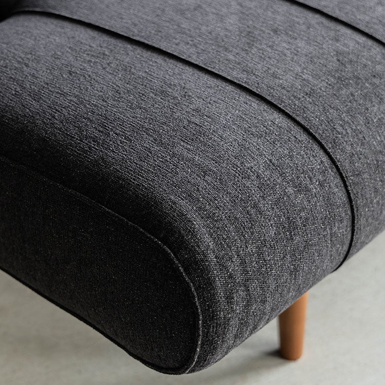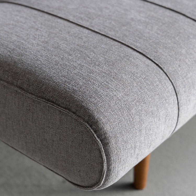 デザインはシンプルでありながら細部までこだわり、ファブリックのステッチやパイピングで程よいアクセントをプラス。ミドルブラウンの木脚がナチュラルな温もりを添え、モダン・北欧・ナチュラルなど、さまざまなインテリアスタイルと調和します。壁際に配置するのはもちろん、リビングとダイニングの間にレイアウトするのもおすすめ。肘のないすっきりとしたシルエットが空間を広く見せ、どんなレイアウトにもなじみます。