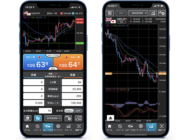 新スマホアプリ『外貨ネクストネオ「GFX」』は、アプリ内でデモ口座への切り替えが可能となっており、本番と同じ環境でデモトレードをお楽しみいただけます。初めてアプリをご利用されるお客様でも安心してご利用いただくことが可能です。その他にも、お客様のニーズに合わせたチャート機能や、 指定した数値に到達するとプッシュ通知が届く機能など、FX初心者から上級者まで幅広くご満足いただける機能を用意しております!