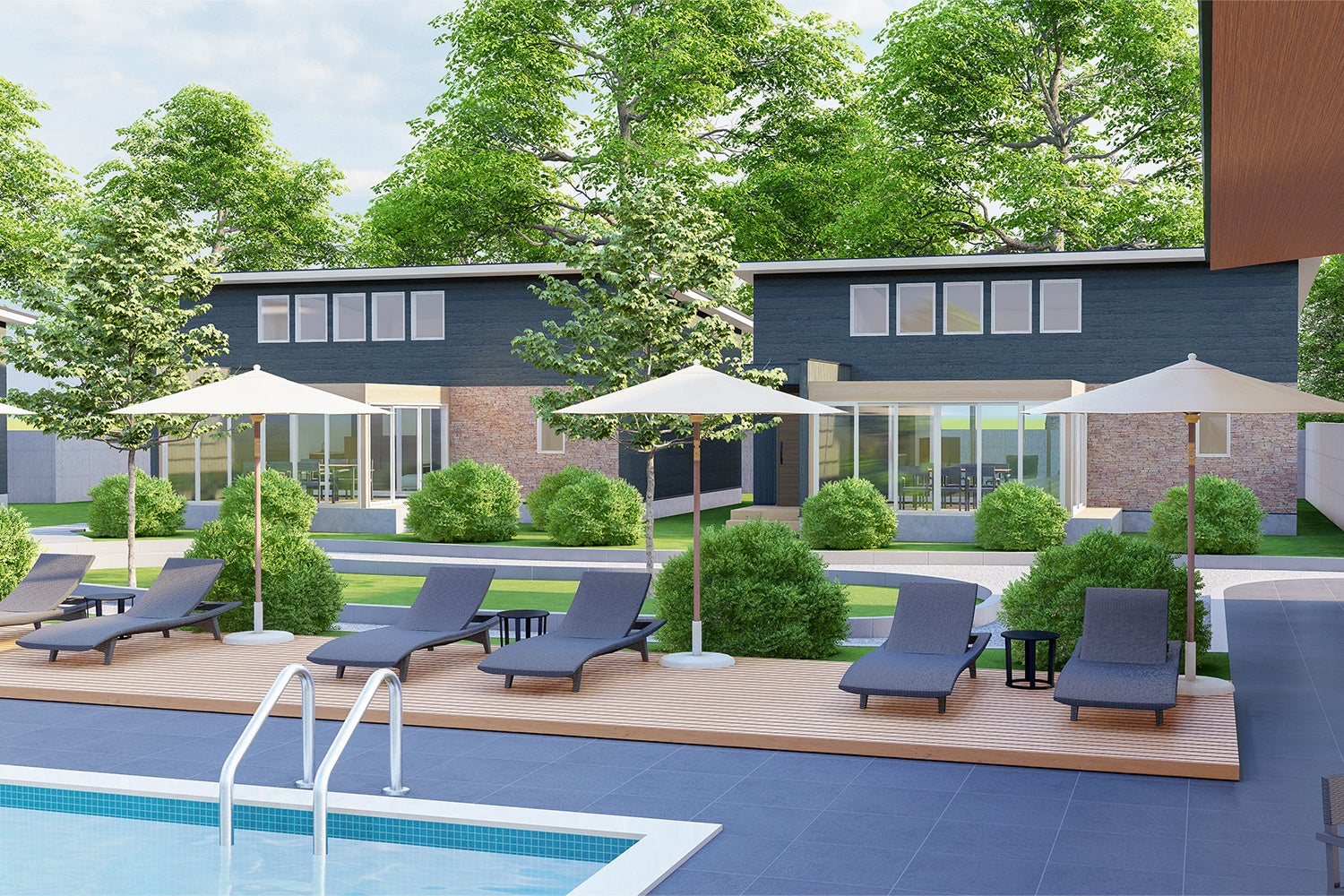 ⑥上質な非日常のひとときを。専用プールを配置したアウトドアリビング