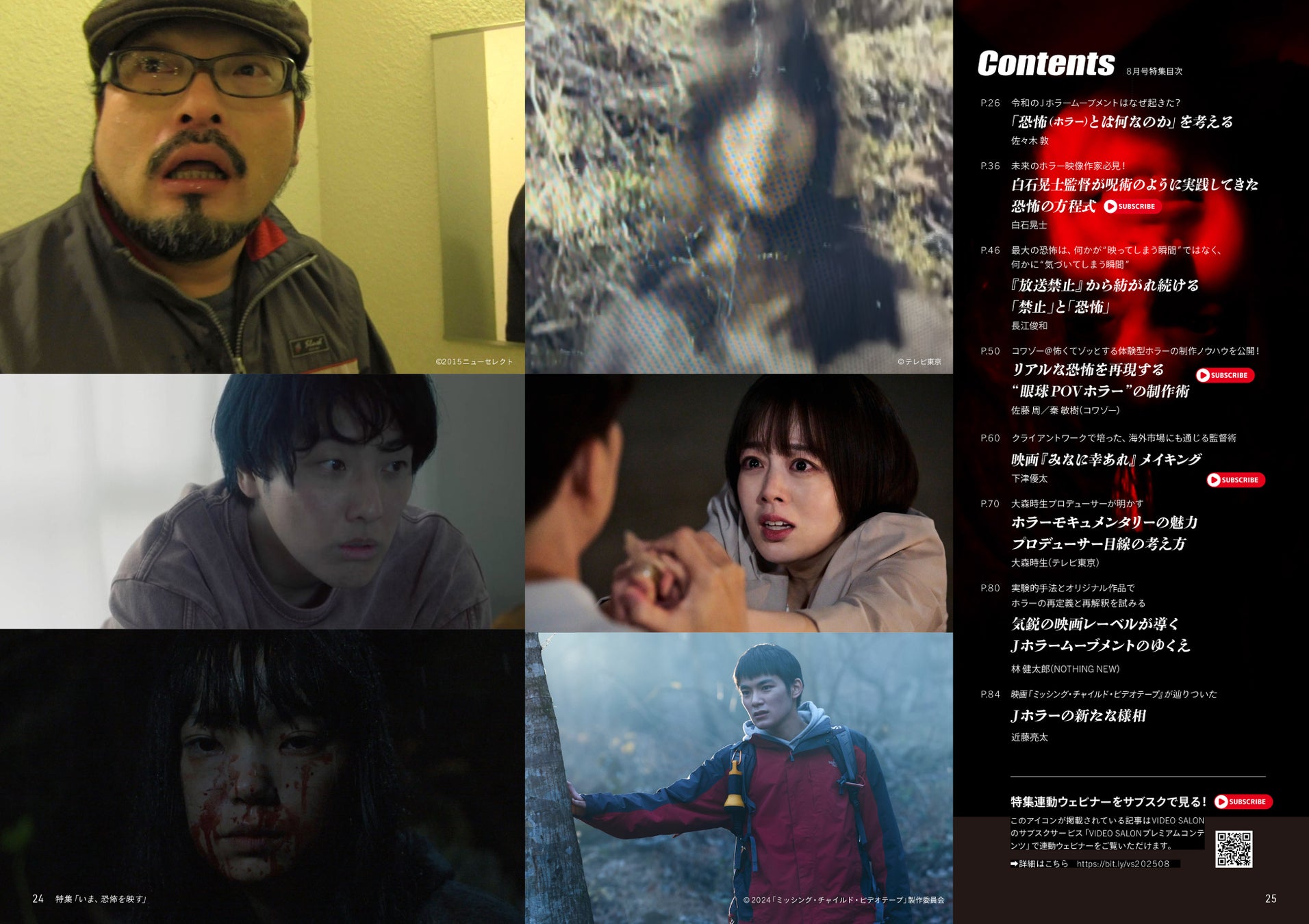 映像制作の専門誌「ビデオサロン8月号」の特集は、「いま、恐怖を映す」。1980年の創刊以来、初めて恐怖映像・ホラー映画にフィーチャーした合計70ページの総力特集だ。