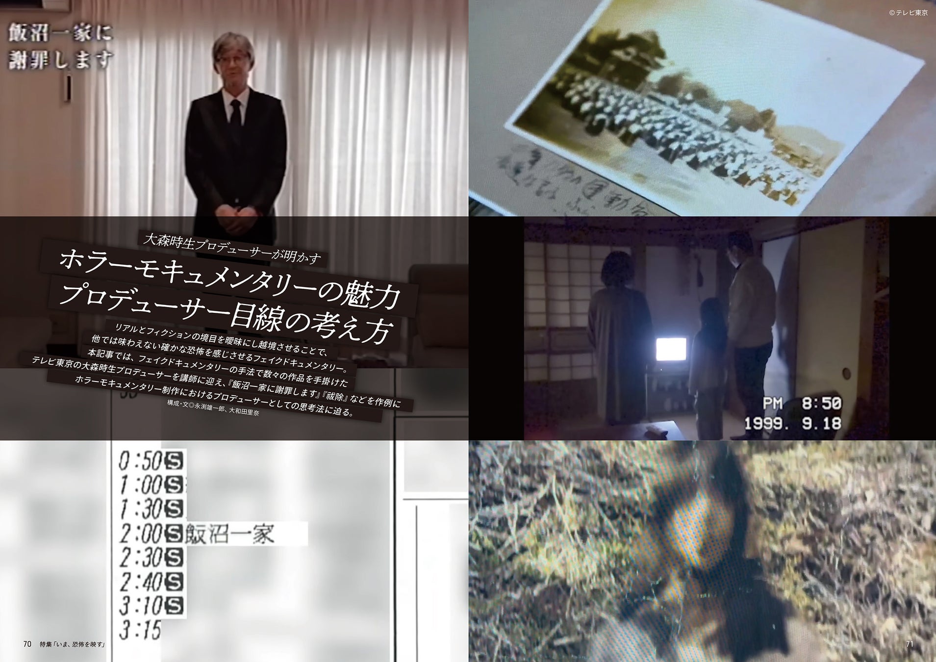 また、『コワすぎ!』シリーズや映画『ノロイ』、『カルト』などで知られる白石晃士監督が企画、脚本、演出、音響などさまざまなパートごとに恐怖の宿し方を伝授する企画や、『イシナガキクエを探しています』、『飯沼一家に謝罪します』などで知られ、最新作『魔法少女山田』の放送が控えるテレビ東京の大森時生プロデューサーが、ホラーモキュメンタリーの制作の際の思考法や魅力を語る企画をお届け。