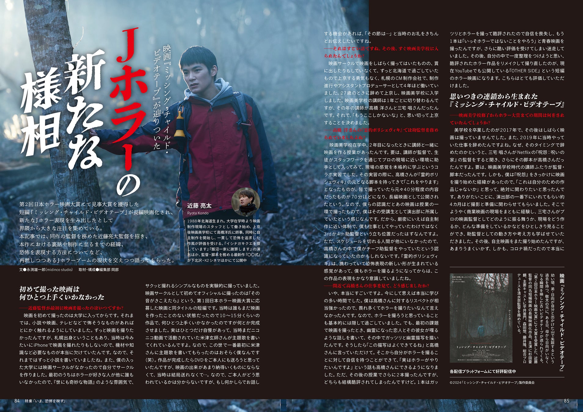 加えて、今年1月に公開され多くの反響を呼んだ映画『ミッシング・チャイルド・ビデオテープ』を手がけ、現在中編映画『〇〇式』が公開中の近藤亮太監督へのインタビューや、設立から日が浅いながら、さまざまな取り組みで、Jホラーに新しい風を吹かせる気鋭の映画レーベル・NOTHING NEWの代表、林健太郎さんへのインタビューなど盛りだくさんの内容だ。