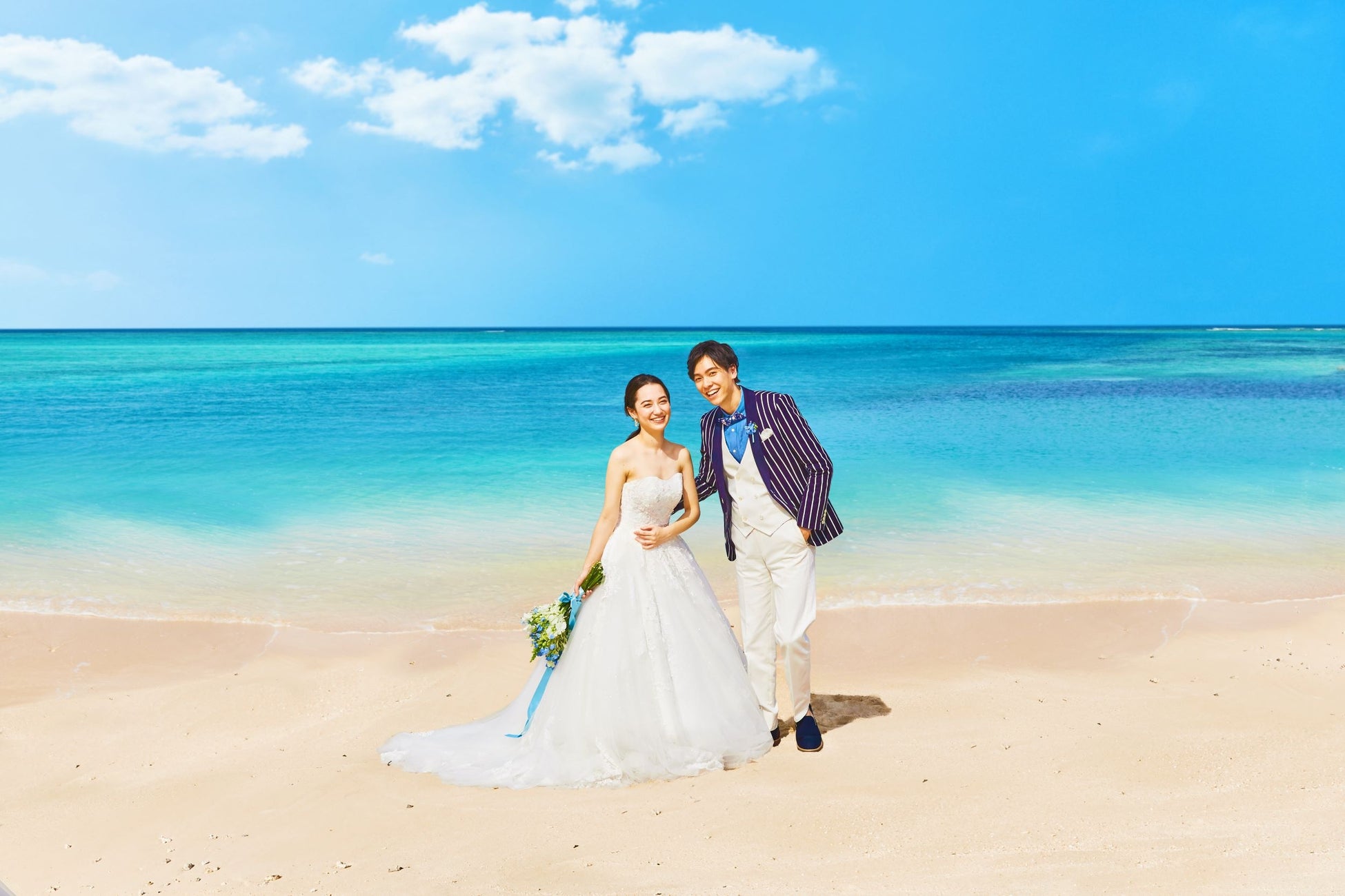 エメラルドブルーの海と白い砂浜をバックに憧れのリゾートウエディングフォト撮影を。