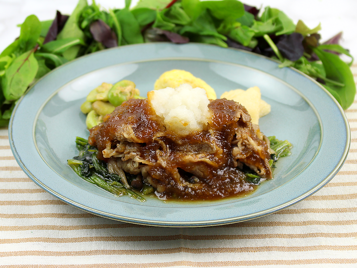 ソースの上には雪に見立てた大根おろし「牛肉の雪中蒸し」がナッシュから新発売