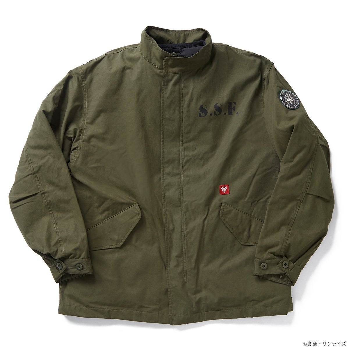 RED COMETモデルは、ジャケットの左胸にシャア・アズナブルの部隊ナンバー「A12」をプリント、左ポケット上部にはワンポイントのワッペン、左袖にはシャアマークの刺繍ワッペンを施しました。ZEONモデルは、ジャケットの左胸には宇宙攻撃軍 THE SPACE STRIKE FLEETの頭文字「S.S.F.」をプリント、左ポケット上部にはワンポイントのワッペン、左袖には宇宙攻撃軍マークの刺繍ワッペンを施しています。両モデルともにシンプルデザインに仕上げました。
