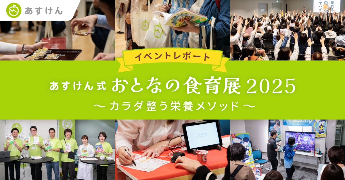 2025年5月には体験型イベント『あすけん式 おとなの食育展2025~カラダ整う栄養メソッド~』を開催しました。本イベントは大好評につき2年連続の開催。当日は約1,100名の方にご来場いただき、セミナーや各種コンテンツを通じて、来場者の皆さまと一緒に健康について考え、楽しみながら学び、その気づきを日々の食生活で実践していただけるきっかけづくりを行いました。