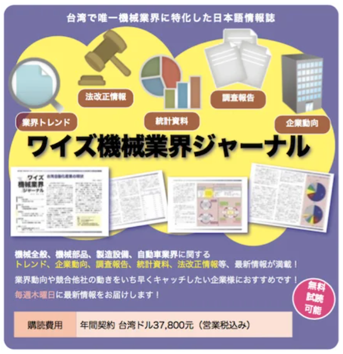 ・日本語台湾経済ニュース、機械業界ジャーナル配信