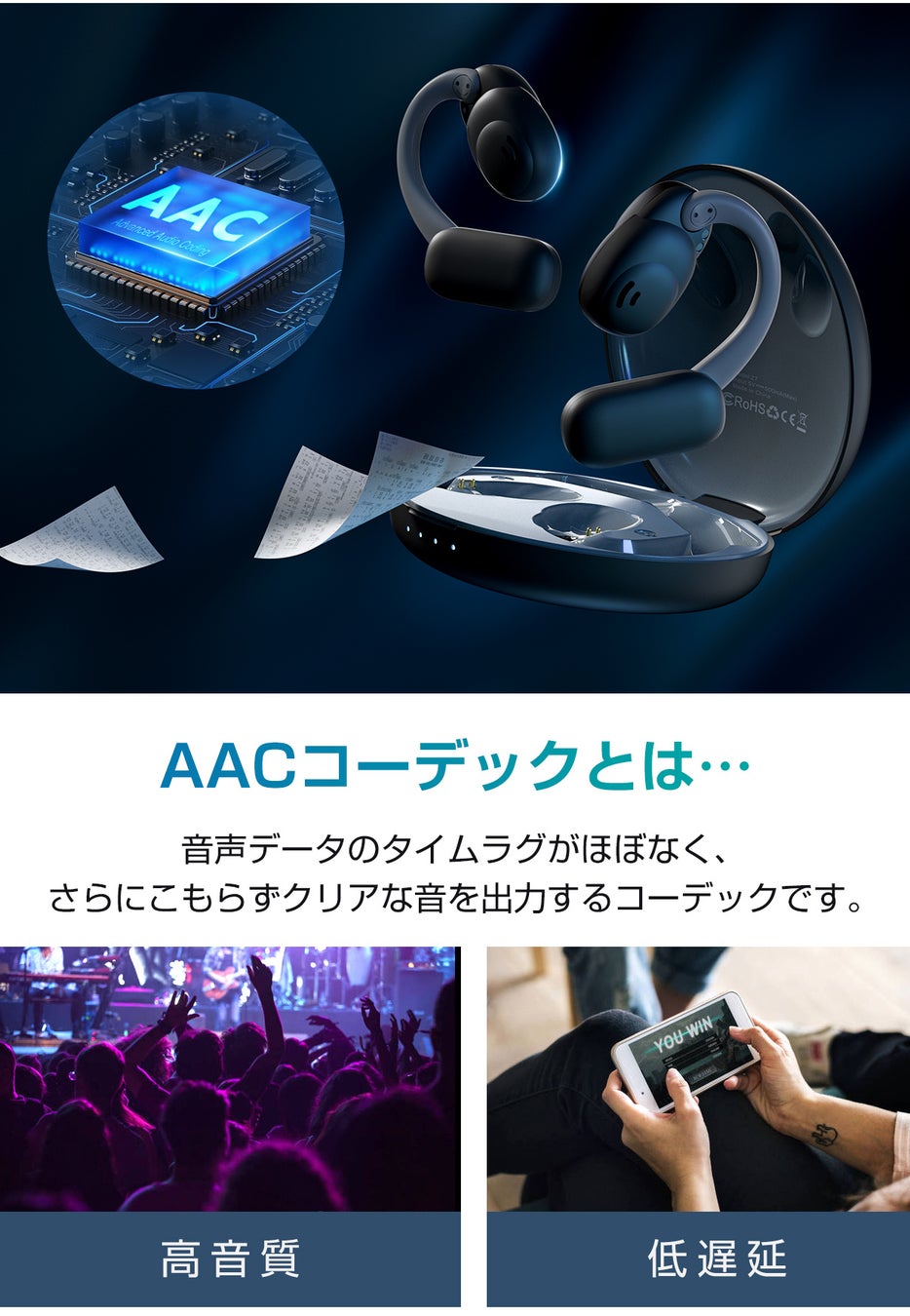 AACコーデックの利用によって、クリアで詳細な音楽を再生することが可能になります。音楽の細かなニュアンスや楽器の音色がより鮮明に伝わり、没入感のある音楽体験が得られます。