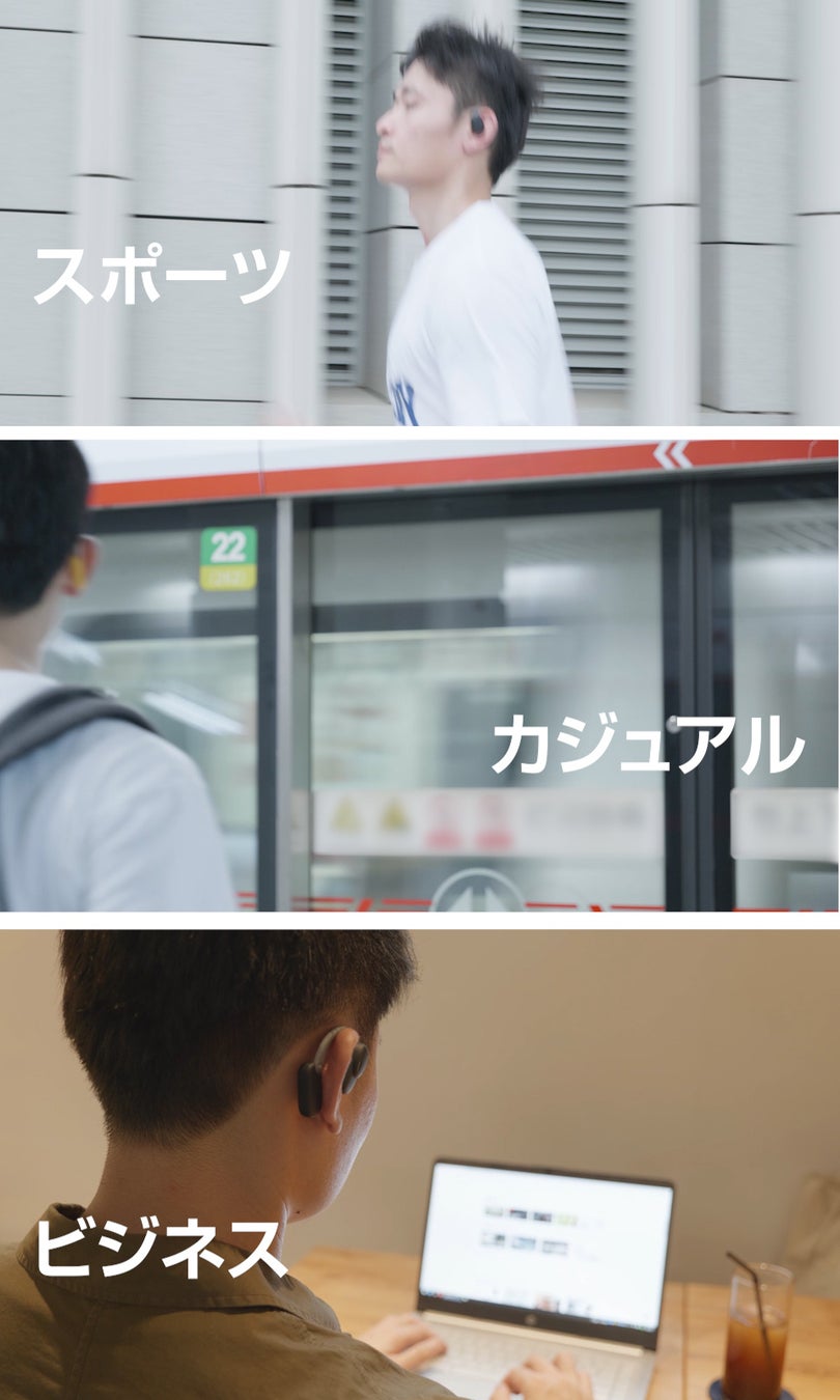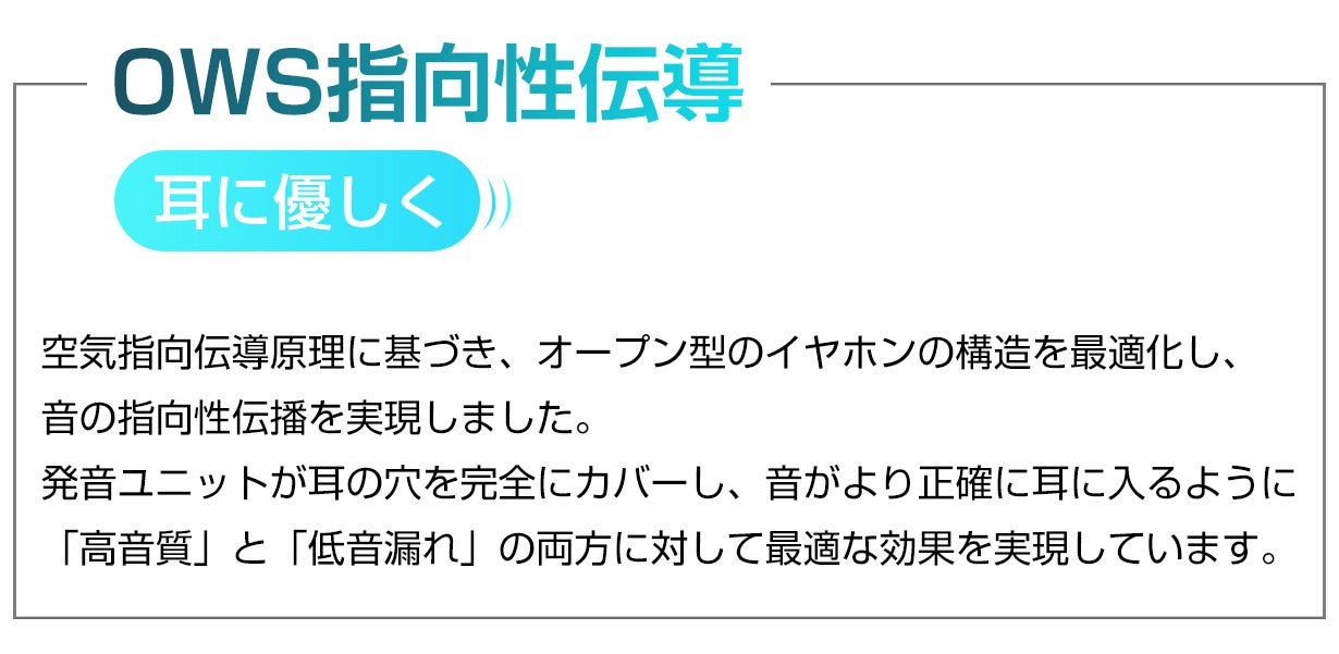 外耳道に入ることなく空気を通じて内耳に伝える空気伝導で、圧迫感や閉塞感がなく、耳が蒸れる心配もなし、長時間の装着による圧力を軽減します。耳に挿入しないため、聴力を損なうリスクがなくて耳の健康を守ります。