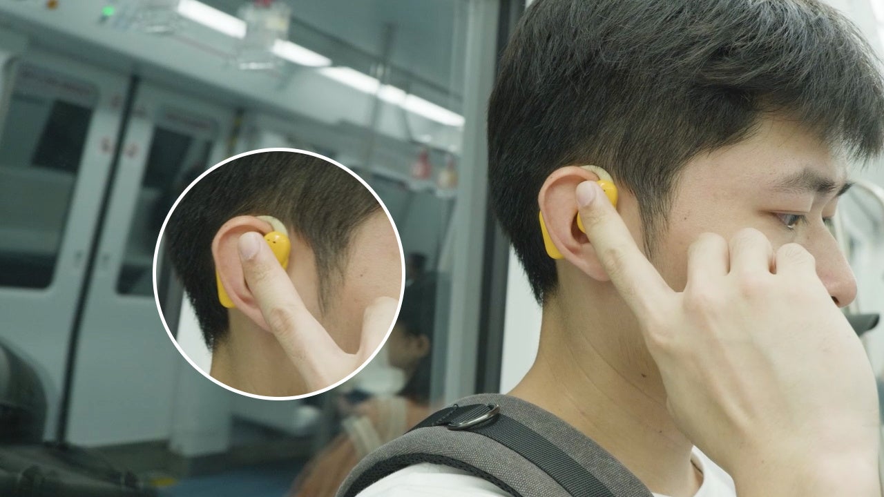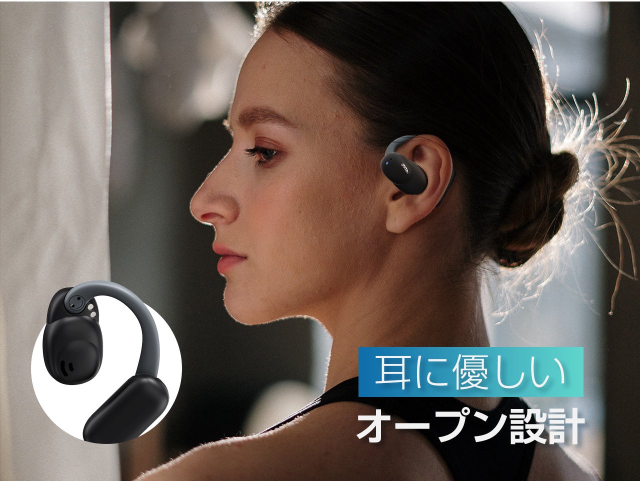 OWSイヤホンはTWSイヤホンとは違い、発声器が耳道の上部に位置し、耳をふさがないオープンな設計のため、快適な装着感です。