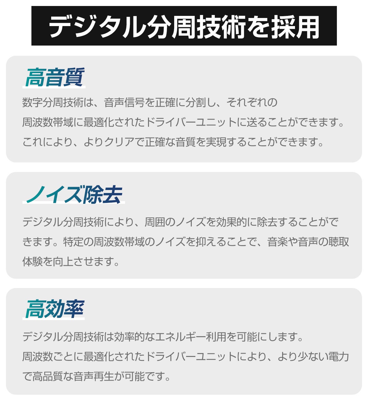 現場にいるような自然な音質を耳から忠実に再現し、音楽がより深みを持ち、ダイナミックな感動を与えてくれます。