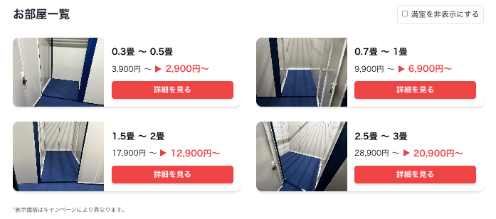 荷物以上に大きな部屋を借りてしまうことや、狭すぎて荷物が入らなかったなんていうトラブルを回避できます。