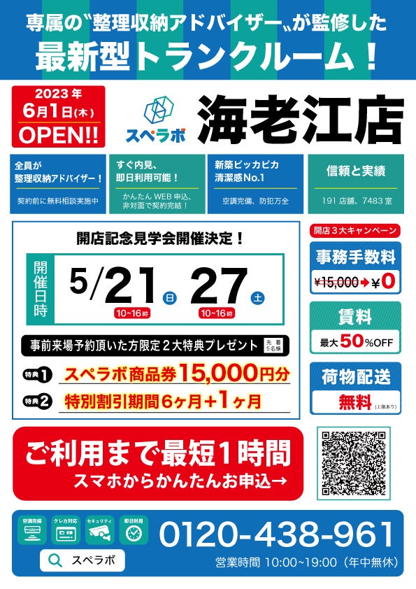 【海老江店/6月1日(木)オープン】見学から契約、解約まで完全非接触・非対面、お申し込みからご利用まで最短1時間!都内、大阪などにて絶賛運営中のトランクルーム【スペラボ】が海老江駅近くに出店!