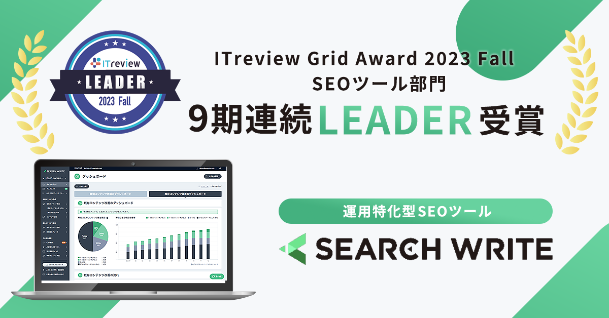 株式会社PLAN-Bが提供する運用型SEOツール「SEARCH WRITE(サーチライト)」がITreview Grid Award 2023 Fallで「Leader」を受賞