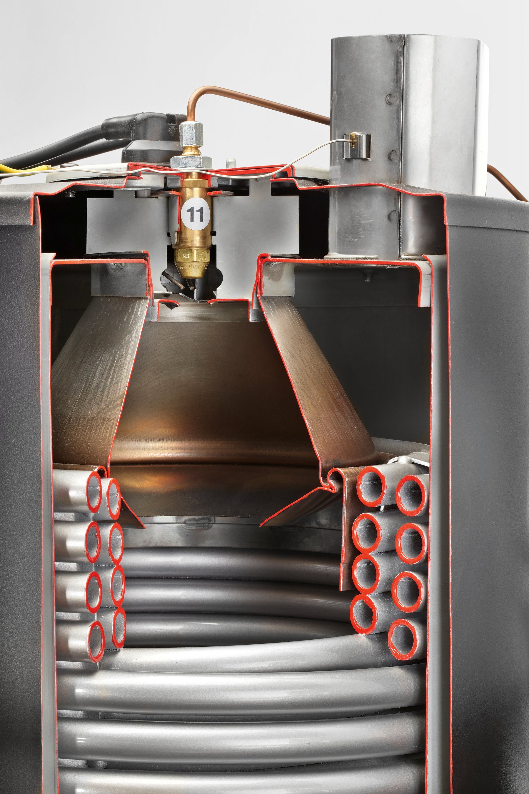 燃焼効率の高いギアポンプの採用により、過度な加熱が不要となりボイラーへの負担をかけません。また、アンローダーバルブと安全バルブの2重装置によりポンプを保護します。