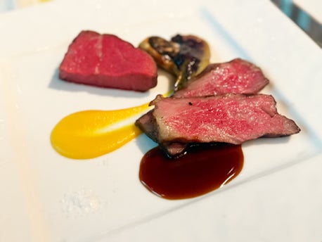 会場では、鹿児島県産和牛を中心に、県産食材をふんだんに使ったイタリアンのフルコースが提供されました。今回の主役は、日本初の個人名ブランド牛として知られる「のざき牛」です。出荷の約7割がA5ランクという高い品質を誇り、国内外のシェフや美食家から信頼を集めています。
