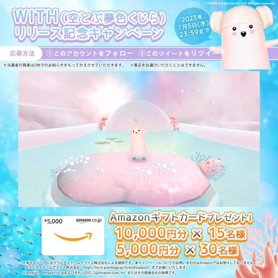 グラビティは、癒し系放置型モバイルゲーム『WITH: Whale In The High -空とぶ夢色くじら-(通称:夢ウィズ)』において、本日2023年6月29日(木)に正式サービスを開始いたしました。