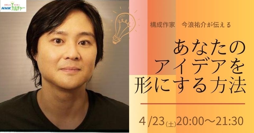 <4/23(土)開催> ~構成作家・今浪祐介が伝える~ あなたのアイデアを形にする方法 【NHKカルチャーオンライン講座】