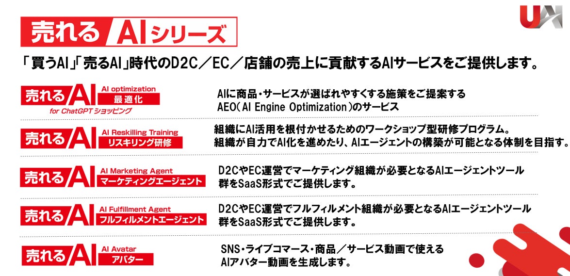 売れるAIマーケティング社は、『売れるAIアバター』を皮切りに、「売れるAIシリーズ」として、あらゆるビジネスの“売上”をAIの力で最大化する、究極のAIソリューション・プラットフォームを構築してまいります。AI消費者の購買活動を代行する「買うAI」時代に対応する『売れAI最適化』や、組織のAI戦闘力を飛躍的に向上させる『売れるAIリスキリング研修』など、D2C/EC/店舗の売上に直結する革新的なAIサービスを続々と市場に投下していく計画です。