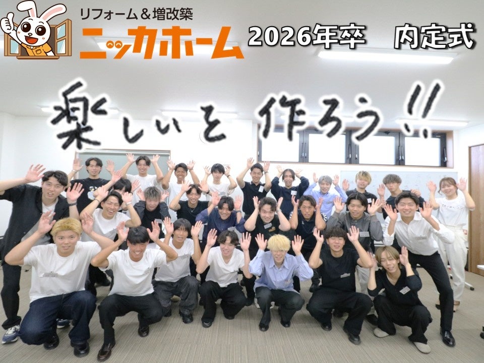 ニッカホームは、昨年度に続き、2026年新卒でも100名を超える採用を実現しました。関東・中部・西日本・九州の4支社で全国規模の採用を行い、2年連続の大規模採用は、住宅リフォーム業界における成長と存在感を示しています。