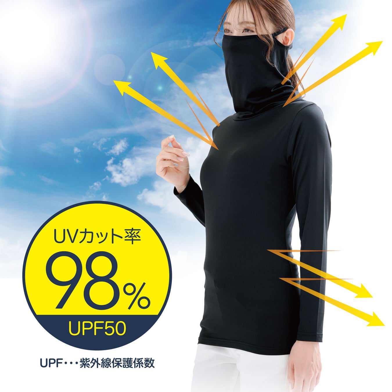 UVカット率98%・UPF50でしっかりUV対策!