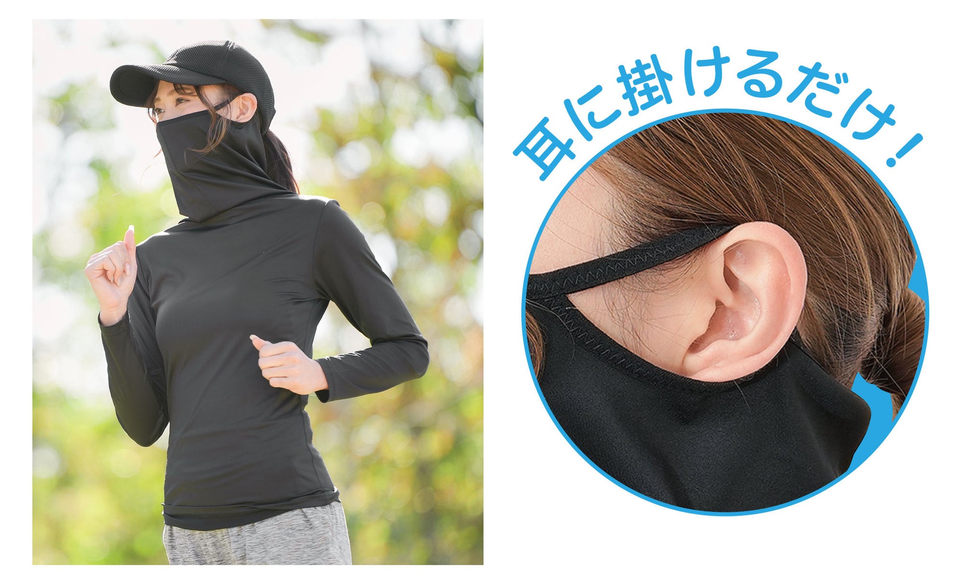 ループを耳に掛けるだけで鼻まですっぽり覆ってくれて、紫外線から肌をしっかり守ります!