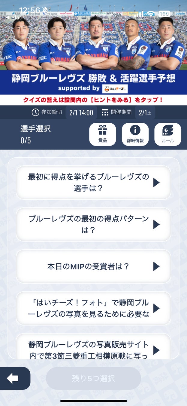 『静岡ブルーレヴズ試合展開・活躍選手予想 supported by はいチーズ!』2月1日(土)東京サントリーサンゴリアス戦を対象にスポーツ予想アプリ「なんドラ」で開催!
