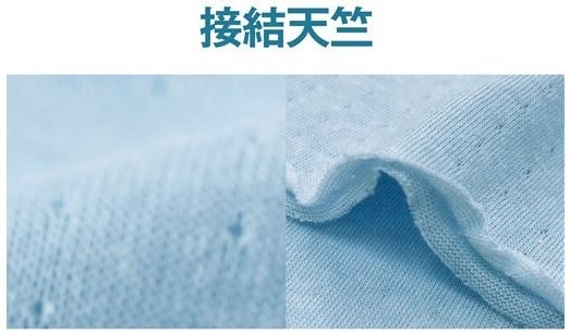 表地と裏地の2枚の生地が重なり、 間に空気を含むので通気性が良く、ほんのり暖かくやさしい肌当たりの接結素材。