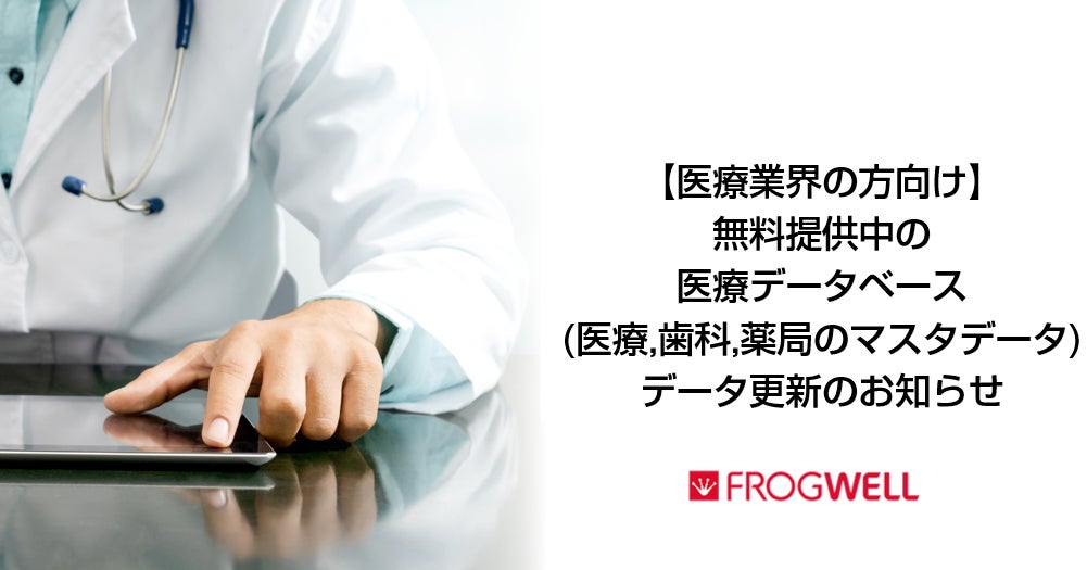 このたびは、提供している医療機関データベース(医療、歯科、薬局のマスタデータ)のデータを更新いたしましたのでお知らせいたします。