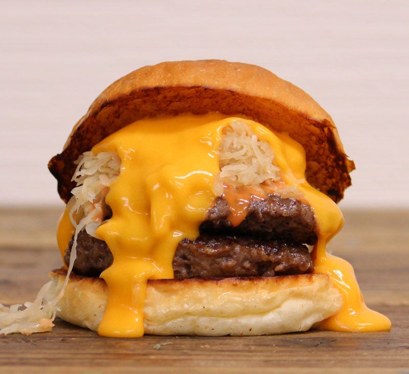 道産小麦のふっくらした自家製バンズと道産牛を使用したダブルパティに濃厚チェダーチーズソースをたっぷりかけたエスコンフィールド限定のダブルチーズバーガーを、ぜひご賞味ください。