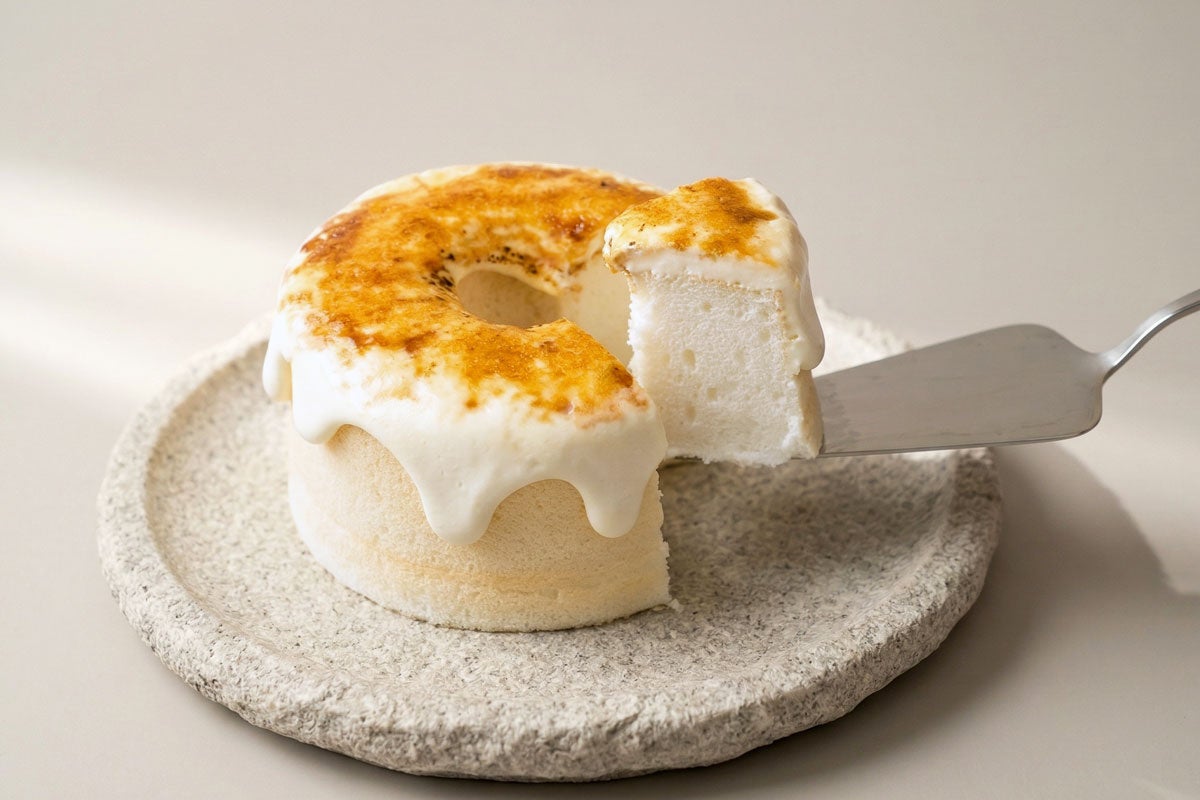 ブランドの代名詞ともいえる、キャラメリゼのほろ苦さと、とろけるクリームの甘みが調和したシフォンケーキ。しっとりふわふわの生地に、パリッとした食感のブリュレがアクセントを添える、五感で楽しむシフォンケーキです。