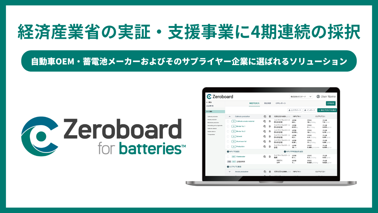 「Zeroboard for batteries」が経済産業省の実証・支援事業に4期連続の採択