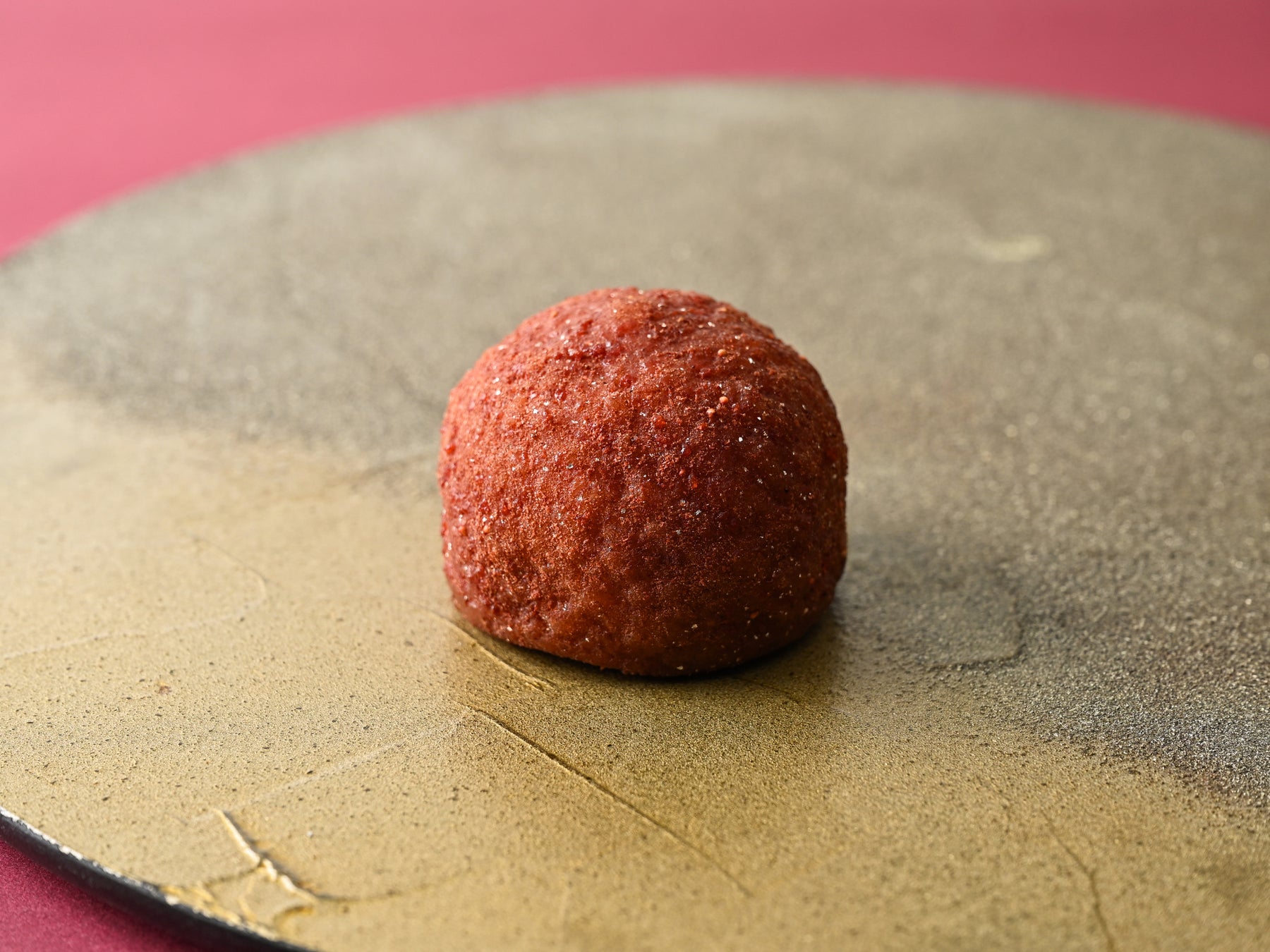 なめらかなこし餡を包んだ道明寺餅に苺パウダーとカカオパウダーをまぶし、火星の質感を表現しました。もちもちの食感とやさしい甘さにほんのり甘酸っぱい苺の風味は、きっと火星人もお気に入りです。