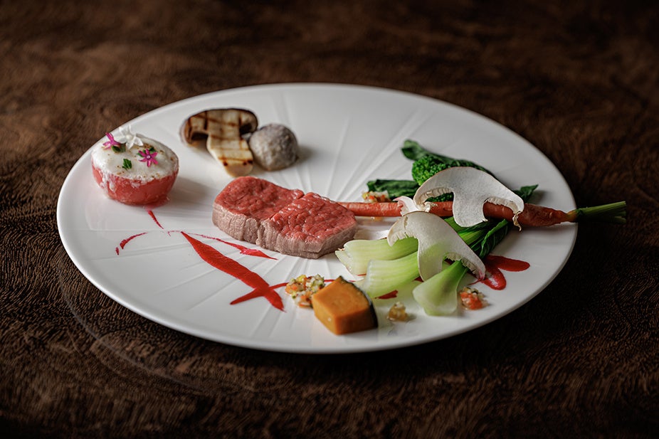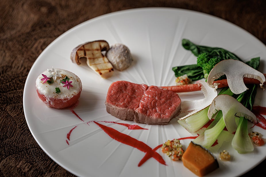 丹波牛の特徴である、柔らかい肉質と、甘みのある脂が際立つ一品です。低温でじっくりと火入れすることで、その繊細な旨味ととろけるような食感を最大限に引き出しました。