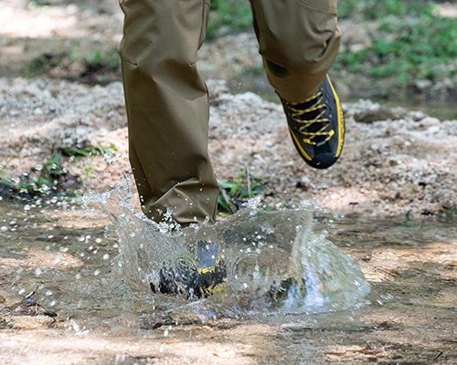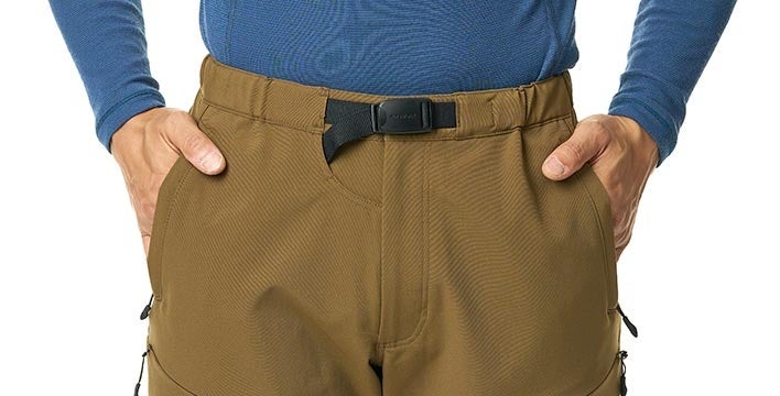 長く使い続けてもらうため経年劣化しやすいポリウレタンを使用しないメカニカルストレッチの生地は、パンツの型崩れを軽減し、ヘタりにくく濡れても弛みにくい特徴を備えています。