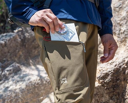 様々な遊びのシーンで使い勝手の良い大型のポケットを大腿部に配置しています。