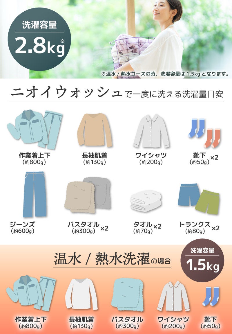 ■洗濯容量2.8k(熱水温水洗濯容量1.5kg)