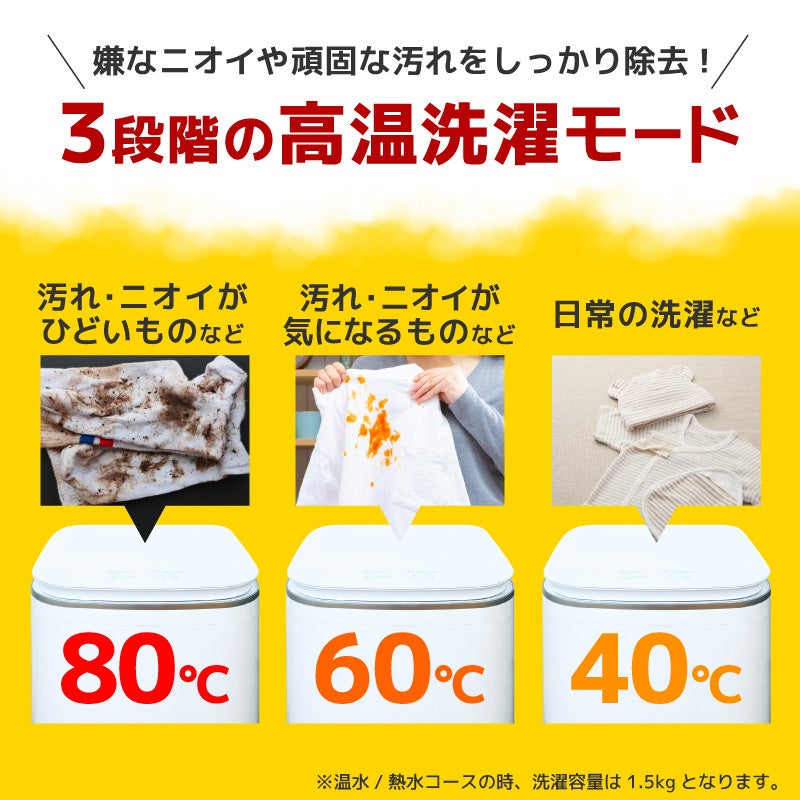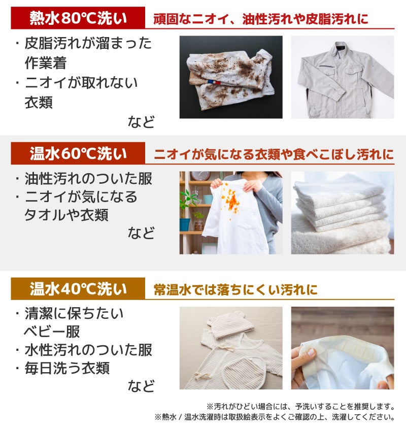 ■洗う衣類に合わせた80度60度40度の3つの高温洗濯モード