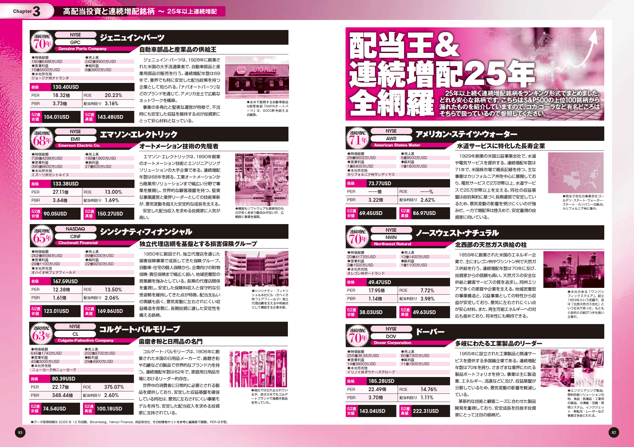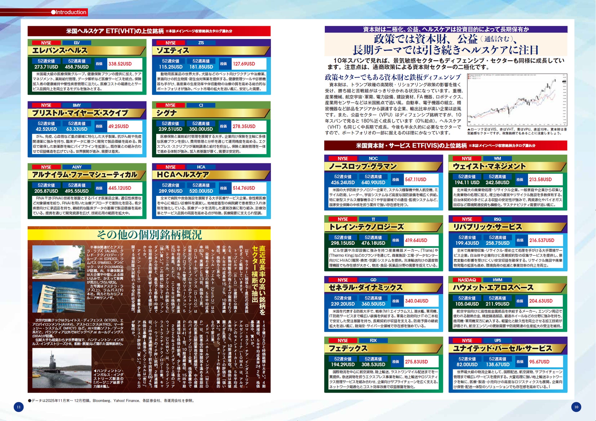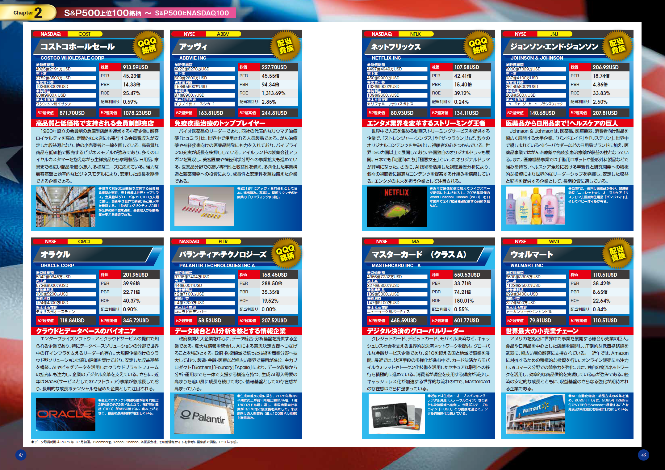 巻頭では2025年末から2026年の米国株全体の概観を見ます。セクター別の成長率や大型グロース、また5年、10年スパンの成長性を見ていきます。超有名企業から日本であまり知られていない銘柄まで、痒いところに手が届く構成となっています。
